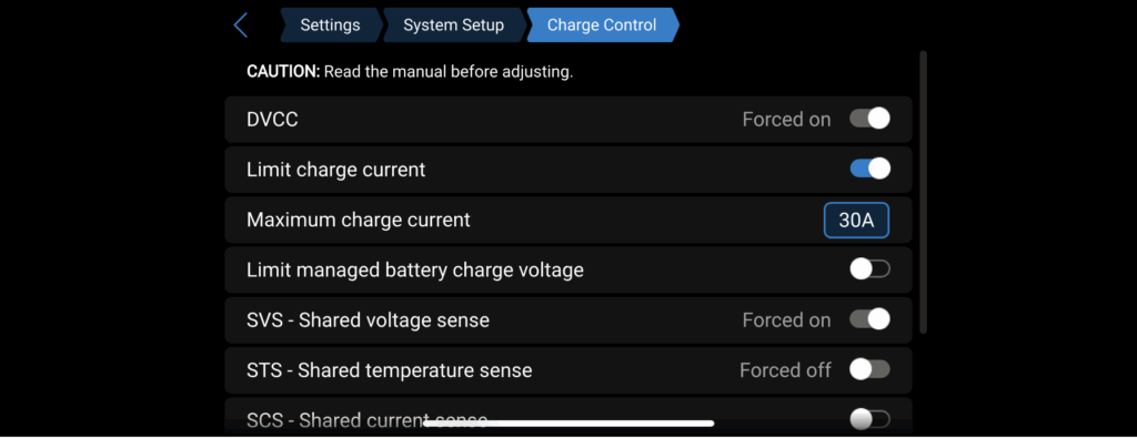 Also, DVCC eliminates the need for additional control wiring. I had planned to wire the remote switches on the Orion units to the Allow To Charge (ATC) pin on our Smart Lynx BMS, to prevent things like low temperature charge and overcharging; however, this is unnecessary since DVCC already performs these functions.