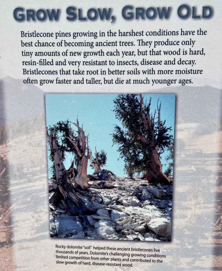 We have been fortunate enough to see bristlecones at Great Basin National Park, Cedar Breaks National Monument, and Bryce Canyon National Park. For us, it is still a pretty rare thing to see these beautiful old giants and we jump at any opportunity to visit them. It was a bit of a drive for us from our camp at Horton Creek to the Ancient Bristlecone Pine Forest Visitor Center, but it was well worth it.